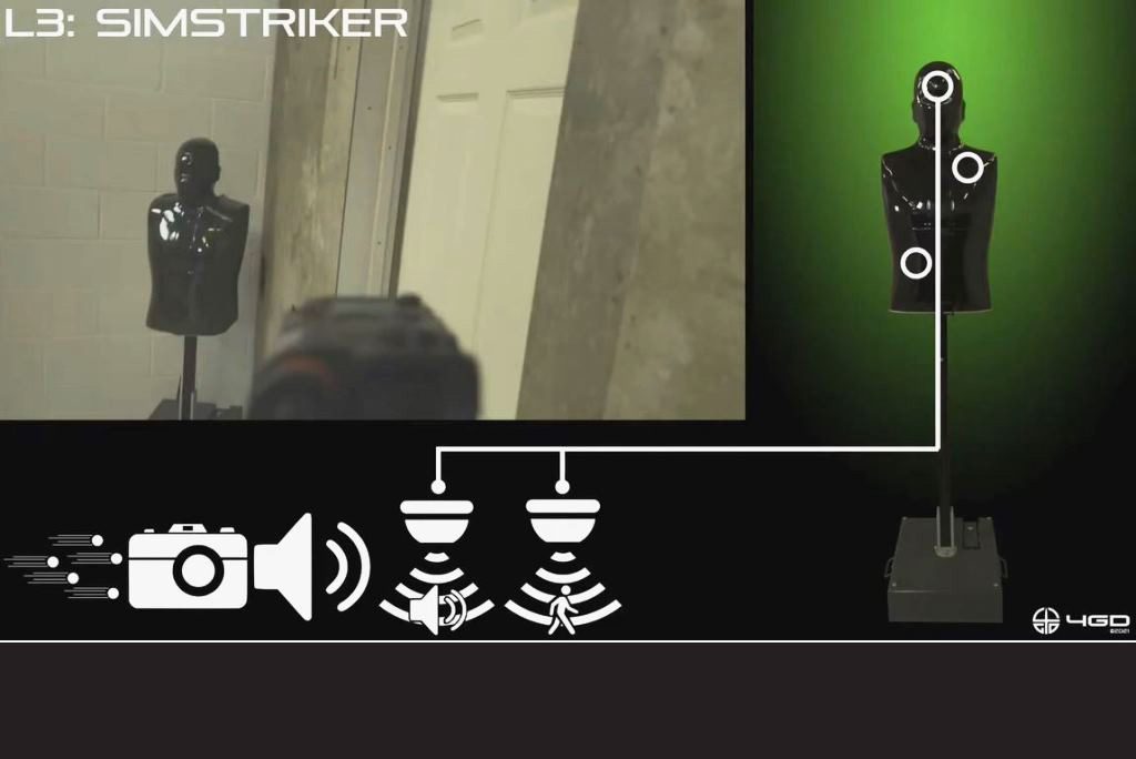 SimStriker is upgradeable and can be networked into 4GD’s ACIES IntegratedRealities synthetic environment to introduce a virtual world to the SmartFacility where the target appears as a digital avatar as well as a physical adversary. When linked to ACIES, real-life actions are reflected in the 3D environment so, when SimStriker is engaged and drops, the avatar inside the simulation does so too, and vice versa.