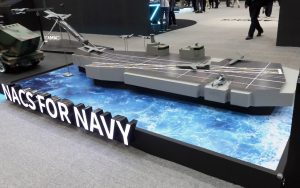 KAI exhibited a model of a nominal aircraft carrier fitted wit a ski jump, which flight deck was populated by UCAVs and UAVs, a clear indication that the Korean aerospace leading company is working to provide the ROK Navy with carrier-capable unmanned platforms. One of those looked identical to the MUCCA, the main difference being the arresting gear. KAI UAVs might well find their employment on board the Ghost Commander II aircraft carrier proposed by Hanwha in its stand.