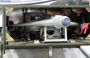 The Medium Loitering Munition is 2.4 metres long and has a 2.9 metres wingspan, the airframe architecture being very much similar to that of the Small LM, of course with a more powerful engine, no more details being available on propulsion. The take-off mass is considerably higher, 150 kg, as well as the warhead, 25 kg, endurance being over 10 hours. The range is very much based on endurance, the data link being based on low earth orbit satellites. An AI-based automatic target recognition system.