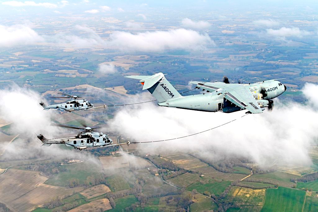With this capability the A400M becomes one of the few tanker aircraft in the world capable of such operations. The multi-purpose H225M is one of the few helicopters in the world capable of in-flight refuelling, extending the standard 700 NM range by up to 10 hours flight time.