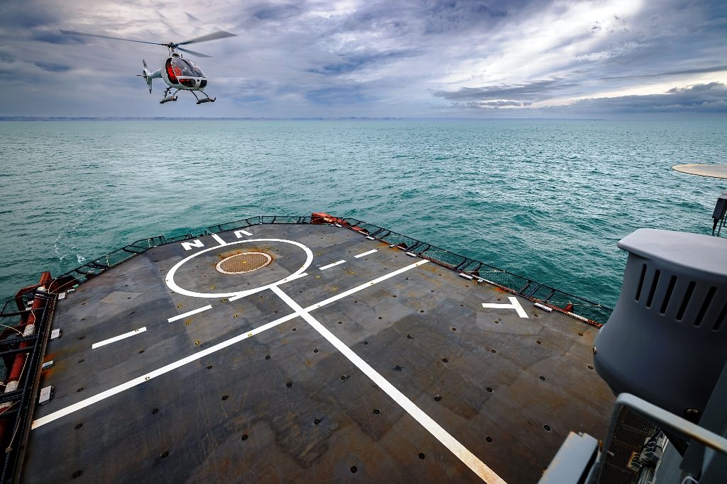Marignane, 24 March, 2022 – Airbus Helicopters has begun trialing autonomous take-off and landing capabilities at sea for the VSR700, an unmanned aerial system (UAS) being developed in the frame of the SDAM (Système de drone aérien de la Marine) programme, conducted by the DGA (Direction générale de l’Armement – the French Armament General Directorate) for the French Navy . Trials were conducted using an optionally piloted vehicle (OPV) based on a modified Guimbal Cabri G2 equipped with the autonomous take-off and landing (ATOL) system developed for the VSR700. This flight test campaign paves the way for the upcoming demonstration of the VSR700, at sea, onboard a French Navy frigate.
