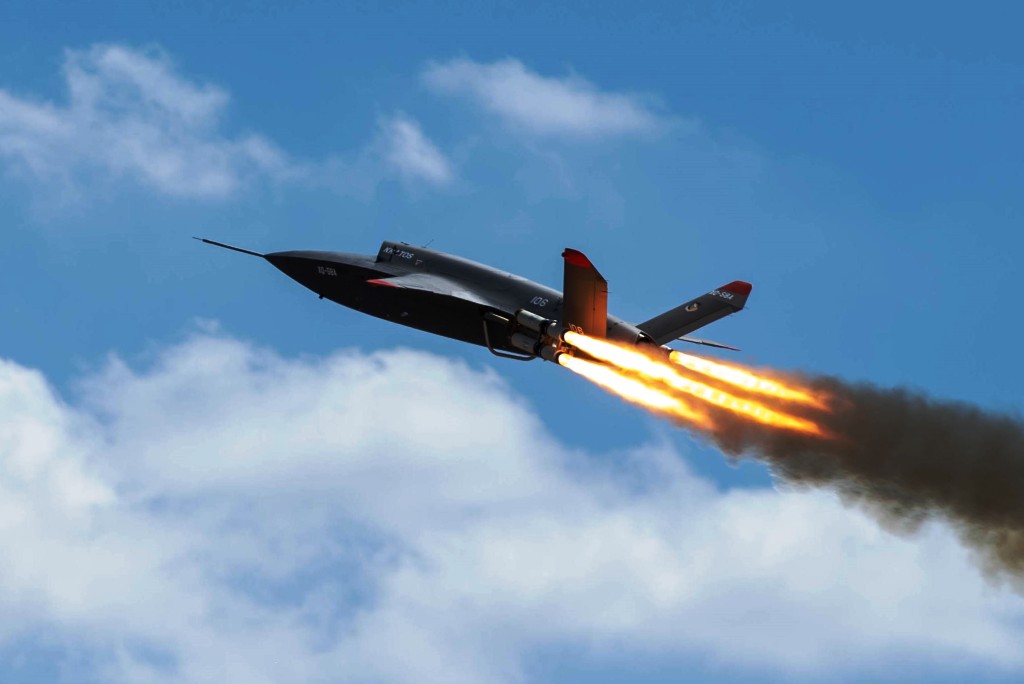 The XQ-58A is a low observable, rail-launched drone with a maximum take-off weight of three tons. It is designed to deliver kinetic and non-kinetic effects, either in autonomous missions or employed with teaming capable fighter jets. The prototype has been in development for years and is able to travel 3,000 miles at an altitude of up to 45,000 ft.