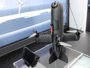 The man-portable drone weighs under 6 kg and carries an 800-gram high-explosive fragmentation warhead, a figure confirmed by Raitis Kipurs, the company’s Business Development & Marketing Manager. According to Origin Robotics, Blaze can be readied for launch in under 10 minutes and engage targets at ranges beyond 10 km. Blaze takes off vertically; it has a near-cylindrical fuselage with four tail wings at the rear, which allow it to stand up before launch. Four wings are also set at 90° from each other and carry, at their extremities, pods containing electric motors, which activate three-blade propellers. The four propellers allow lift-off, after which the airframe rotates and begins flying horizontally, with the propellers providing the thrust that enables aerodynamic lift. At the front, we find the optronic suite, followed by the warhead.