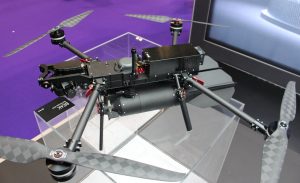 Origin Robotics is also responsible for the development of the Beak, a man-portable drone-launched precision-guided weapon system. The Beak is a conventional VTOL quadcopter, with an upper spar carrying electronics, batteries and the optronic package at the front, and lethal payloads attached underneath. Four spars, each carrying an electric motor activating a two-blade rotor/propeller, are connected to the body.