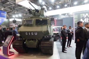 One of the highlights of the stand was the Sisu Ground Tactical Transport (GTT), presented jointly with Finnish manufacturer Oy Sisu Auto Ab. First unveiled earlier this year at SecD-Day in Finland, the made-in-Finland GTT extends the combat-proven legacy of the BRONCO platform while incorporating Sisu’s advanced GTP technologies.