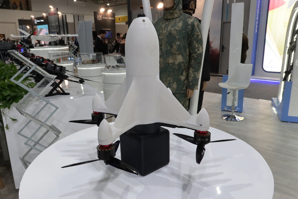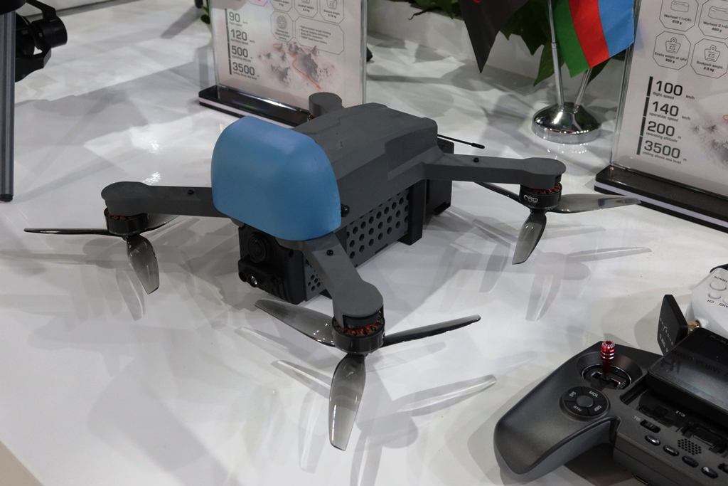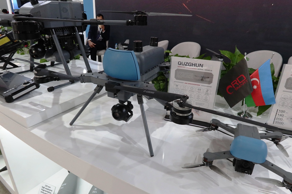 At the Dubai exhibition the Azerbaijan stand was dominated by UAVs, most of them quadcopters capable not only to conduct reconnaissance and surveillance missions, but also to hit enemy targets releasing mortar shells