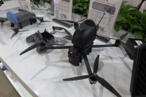 EDR On-Line understood that all those quadcopters are already in production. The only VTOL UAV not yet being produced, but ready to be, was an unnamed drone which shape was very much similar to that of other interceptor drones. A cylindrical fuselage aerodynamically shaped at the front with four delta wings at the rear carrying each an electric motor activating a three-blade propeller, the UAV taking of from a cubic base. No further details were provided, and no dimensions were available, although 500-700 mm should be the length range. Maximum speed declared is 300 km/h, which led company representatives to define it a high-speed First Person View system, although EDR On-Line guess remains that the model seen at EDEX was that of an interceptor drone, UAV-killers of that shape being currently under development in many countries.