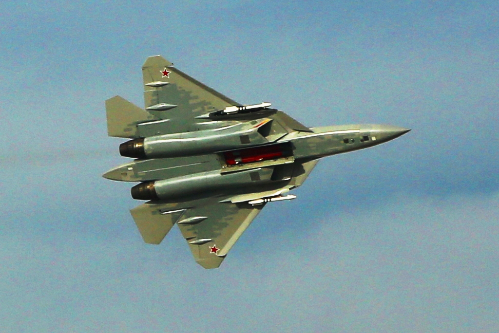 The missile can be armed with a 310 kg penetrating warhead or a 300 kg cluster warhead. The Kh-69’s launch weight is 770 kg, its length is 4.19 m, its wingspan is 2.45 m, and its width with folded wings and tail is 0.4 m. The missile’s square cross-section allows four Kh-69 missiles to be carried in the internal weapons bays of the Su-57 fifth-generation fighter. During its flights at the Dubai Airshow 2025, a Su-57 fighter jet opens the hatch of its forward weapons bay, revealing two Kh-58 UShKE anti-radar missiles, painted red, installed for display. However, these could be replaced by Kh-69 missiles or other weapons.