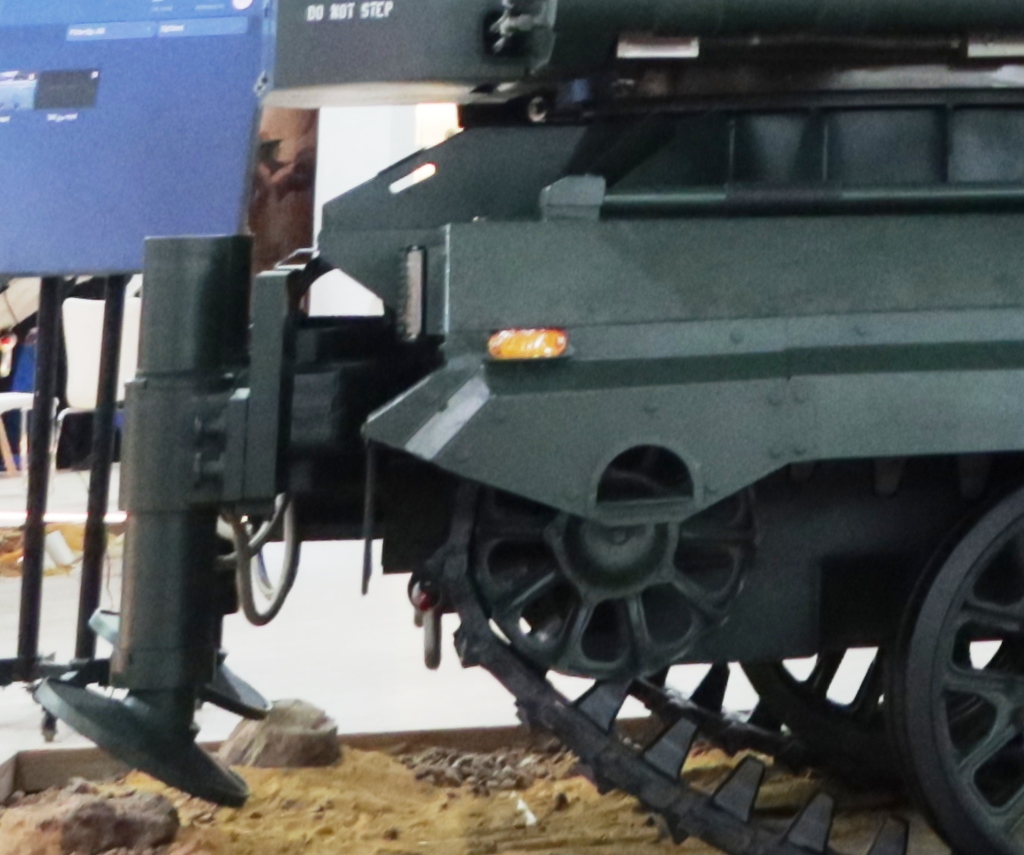 Also other automotive elements seems to be maintained, as the suspensions are based on 10 torsion bars with four shock absorbers, the chassis being fitted with steel tracks with tension adjustment mechanism, the same data of the previous chassis. The cabin is also very similar, can be tilted with the assistance of an hydraulic system, and hosts the crew that operates under armour during the entire firing mission. What is definitely different is the layout of the upper part of the system, the heavier launcher and missiles requiring more powerful electric and hydraulic ancillaries.