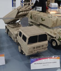 Not only, while China’s SR5 MLRS is based on a wheeled chassis, the choice of using a tracked platform will certainly increase cross-country mobility, at the cost of a reduced speed on road. The prototype seen at EDEX was fitted with a four 300 mm missiles module.