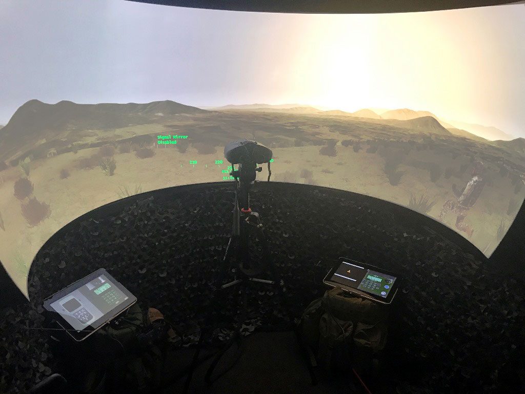 Whilst also available for purchase as a standalone system, in this contract the JFMT is supplied as a fully serviced training package, all contained within a versatile 20ft trailer able to be deployed and recovered by vehicles within short time frames. The system comprises a trainee station, an instructor/operator station (IOS) and a pilot station console. Visuals are provided within a high resolution dome configuration coupled with a powerful and intuitive Computer Generated Force (CGF) and Semi-Autonomous Force (SAF) application. The Image Generation is multi-spectral allowing use of in-service Night Vision Devices in conjunction with a range of emulated equipment, such as laser designators, radios and binoculars providing trainees with a high fidelity “train as you fight” experience. The service is managed, delivered and maintained by a highly experienced team of ex-military subject matter experts.