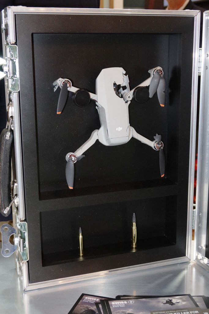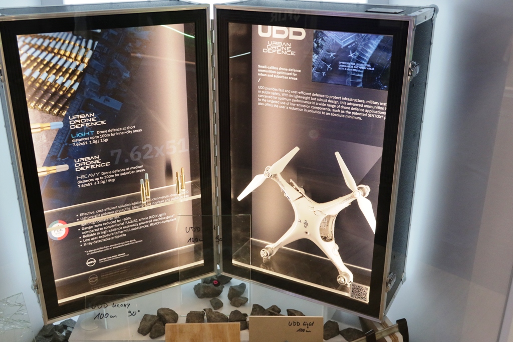 At the Nurnberg exhibition a corner of the huge Beretta Defense Technologies stand hosted the extra short-range C-UAS solutions proposed by the group companies, namely Benelli, RWS and Swiss P, the latter unveiling its SHATTER4K family of rounds in 5.56 and 7.62 mm calibres