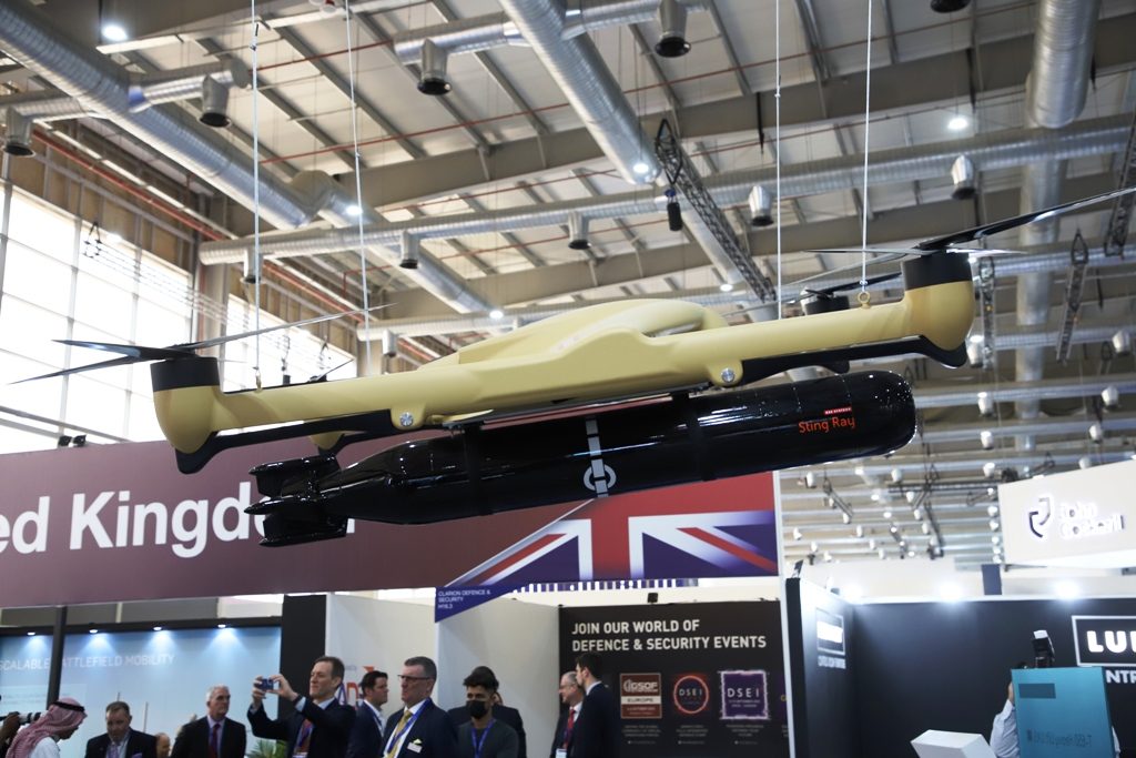 Unveiled at DSEI in September 2021, BAE Systems’ T-650 Electric UAS was exhibited at the World Defense Show in Riyadh. The T-650 is definitely not a product but rather a concept study launched by BAE Systems and Malloy Aeronautics, the two companies intending to explore the development of an all-electric heavy lift UAS that might find applications in various areas. One of those is definitely defence world; here the T-650 can fulfil missions such as automated logistics and resupply, both on land and at sea, CASEVAC (casualty evacuation), anti-submarine warfare carrying i.e. the Sting Ray advanced lightweight torpedo, the system was exhibited in this configuration, maritime mine countermeasures carrying the Archerfish expendable mine neutraliser, maritime Search and Rescue, surveillance and monitoring, and finally Close Air Support in a weaponised version. The full-scale T-650 will have a maximum payload of 300 kg (the weight of the Stingray is around 270 kg) and can reach a maximum speed of 140 km/h. Range with and without payload varies considerably, from 30 to 80 km. According to BAE sources the concept should reduce the cost-per-flight-hour by three orders of magnitude comparing that of the T-650 to that of a medium helicopter.