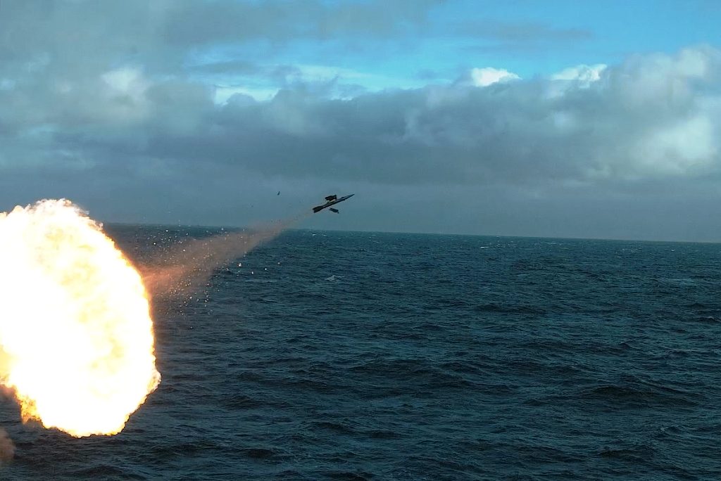 Acceptance shooting aining at demonstratig the accuracy of the new ammunition was carried out on the northern coast of Norway with the frigate Rheinland-Pfalz. While the crew of the frigate maneuvered their ship into the assigned firing position, the previously installed measuring and recording technology could be started in the target area. Several boats, together with aerial reconnaissance, secured the adjacent access preventiing other ships from entering the danger area.