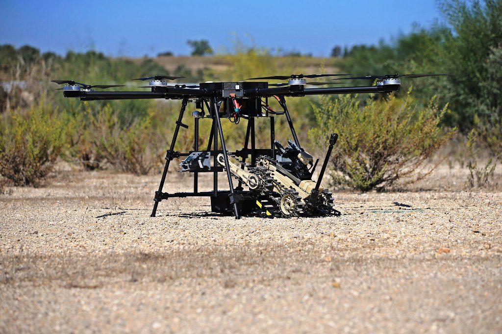The Heven Drones H100 Robo with Roboteam’s Micro Tactical Ground Robot (MTGR) has resulted in the first ever flying robot, which maximizes time-to-lift capabilities of ground robots and flying robots. Bringing the best of both worlds, it is the first joint product of land and ground robot working together.