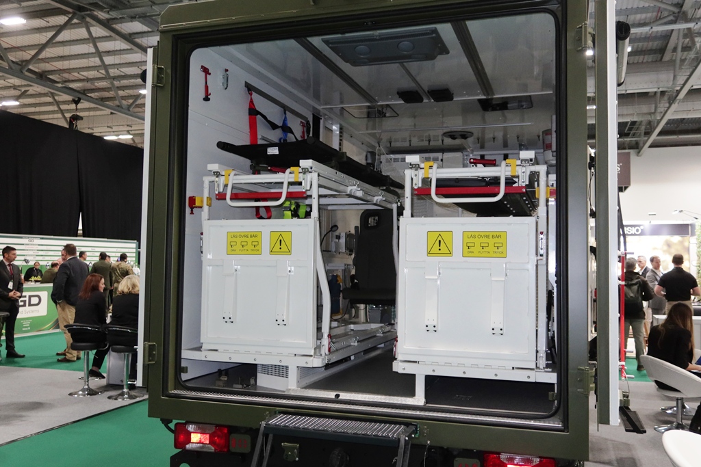 Switching to lighter vehicles, IDV looks with great interest at the LMV programme, which aims at replacing Land Rovers and Pinzgauers in service with the Army, Navy, and Air Force. The ambulance exhibited at IAV was the one based on the MUV long wheelbase chassis, adopted by Sweden, that country having signed a framework agreement in mid-2023 for up to 3,000 light vehicles, the first order including 400 vehicles. The ambulance is one of the 12 configurations on order. A short wheelbase version was exhibited in September 2025 at DSEI London, based on that ordered by the Spanish Army.
