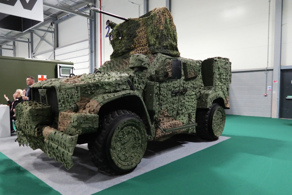 While space issues did not allow exhibiting the tank transporter, this was not true for the JLTV, aimed at the Light Protected Mobility (LPM) segment of the Land Mobility Programme, which also includes heavier and lighter platforms. The JLTV showcased at the Farnborough event under a Saab Barracuda camouflage was fitted with a Kongsberg RCWS armed with a 30×113 mm gun with airburst capability, hence C-UAS capable, a 7.62 mm machine gun, and a Javelin antitank missile; it was the first time Oshkosh Defense was exhibiting the JLTV with a C-UAS effector in Europe, although the Saab Barracuda net was hiding much of the details. Competitors for the LPM are numerous, Otokar, Nurol UK, Urovesa, IDV, Supacat to name some of them. Oshkosh counting on the proven capabilities of its JLTV, of which over 20,000 vehicles have already been produced, an on the involvement of the UK industrial base. A further article dedicated to the JLTV production will be published soon on EDR On-Line. According to available information the IOC or the overall programme, as well as for the LPM, is planned for 2029.