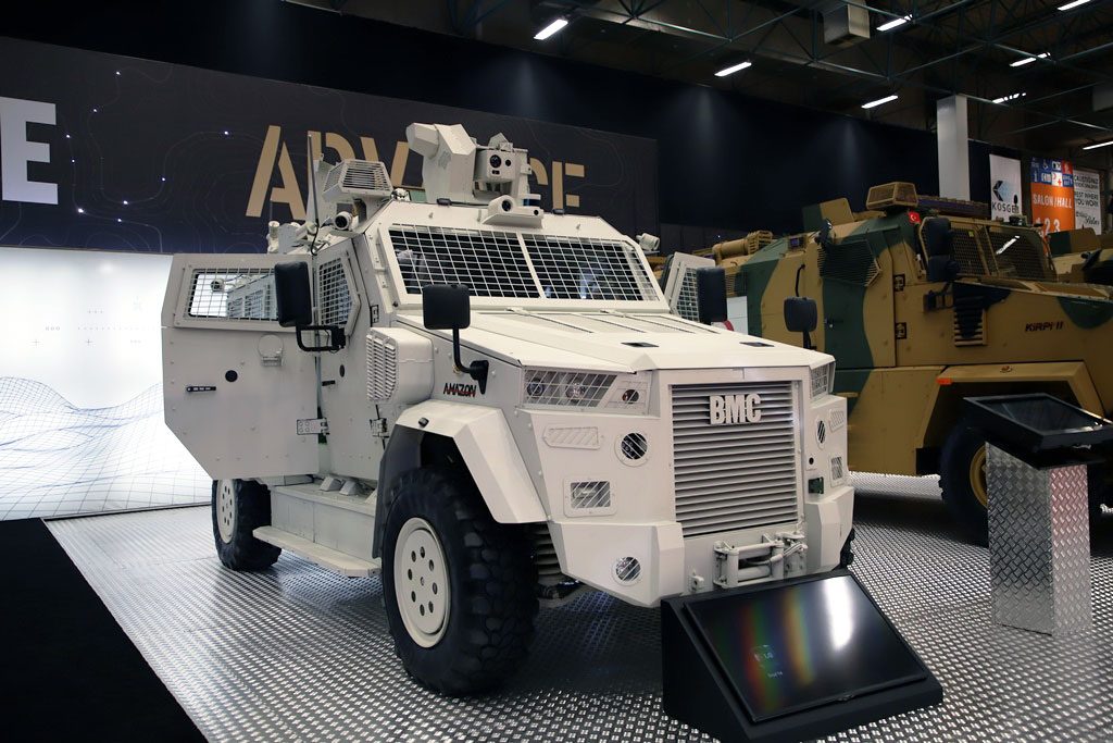Hybrid and autonomous are the two drivers towards the future of military vehicle. BMC, the Turkish company that started producing military vehicles in 1999, unveiled at the Istanbul exhibition a version of its Amazon 4×4 multi-purpose armoured system that aims at quickly acquiring a considerable degree of autonomy.