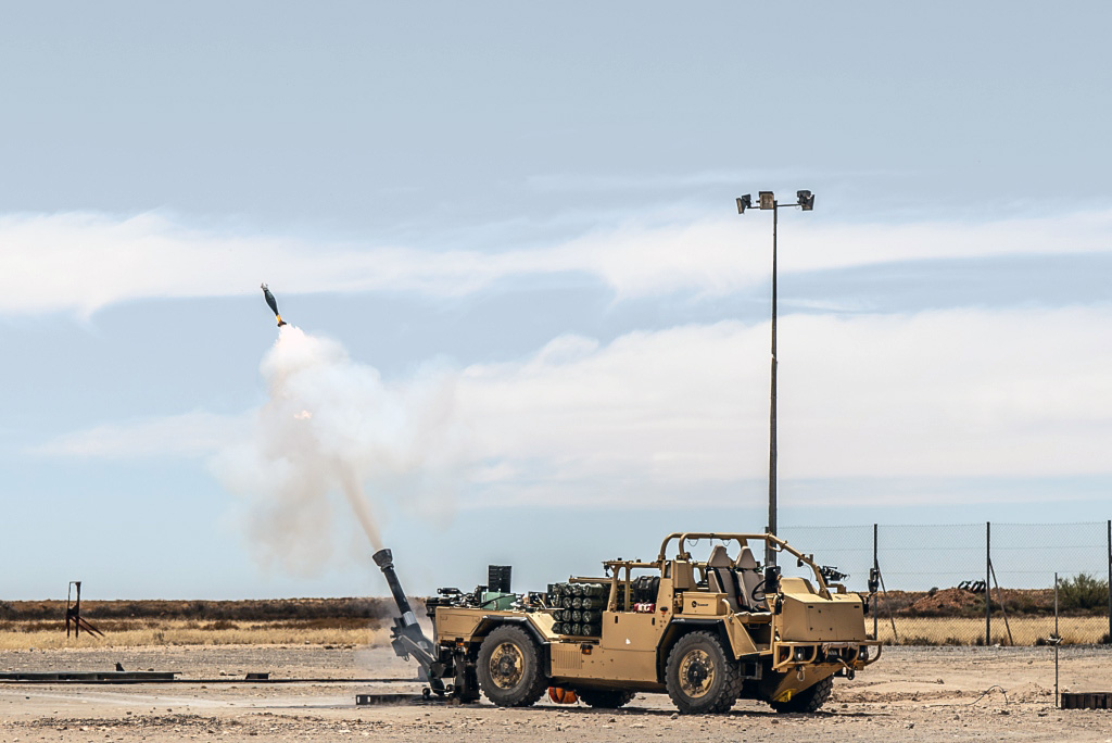 The upgraded GDAMS was the installed on a Supacat Jackal high-mobility transporter, as the next trials were aimed at demonstrating the system to a potential customer, the British Army, which has already in use the Supacat platform. Trials were conducted at the Alkantpan Test Range, in the Northern Cape region of South Africa, and were carried out in cooperation with Babcock International Group, which signed a collaboration agreement with ST Engineering in March 2024 with an initial focus on mortar systems, and with Supacat, the platform provider. During the demonstration many types of rounds were fired, high explosive, smoke, and guided munitions, which according to an ST Engineering press release achieved a three-round grouping of 1.1 meters at a range of 5.5 kilometers.