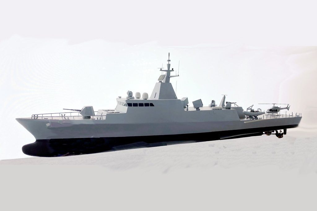 The ship configuration for patrolling missions, presented during the show, featured a landing deck for a medium size naval helicopter and two davit stations for RHIBs launch and recovery in the extreme stern area. The combat system included a bow mounted Leonardo 76/62 mm Super Rapido gun, a vertical launching system for surface-to-air missiles in front of the bridge with up to 4-ten cell VLSs in case of the C-Dome system, two decoy launchers and two 25-30 mm remotely controlled gun system amidship, on the superstructures. The sensors suite included an Elta/IAI ELM-2258 AESA Alpha 3D digital rotating radar, a fire control director for the guns, navigations radars, EW antennas and decoy launchers.