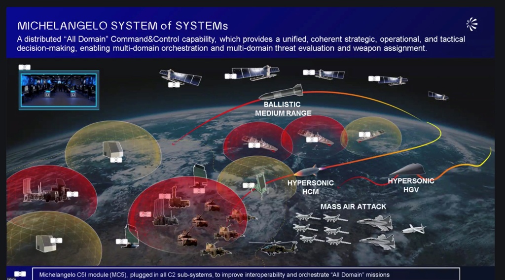 The Michelangelo Dome provides a higher layer C5 system with an architecture designed to be open, meaning fully compatible with the current and future command and control, defensive assets and platforms of other nations and compliant with NATO standards, providing further multi-domain capabilities in the so-called “kill chain”, Cingolani stressed. Basically, a sort of enabler for interconnecting existing systems, even very different ones and not designed to interoperate.