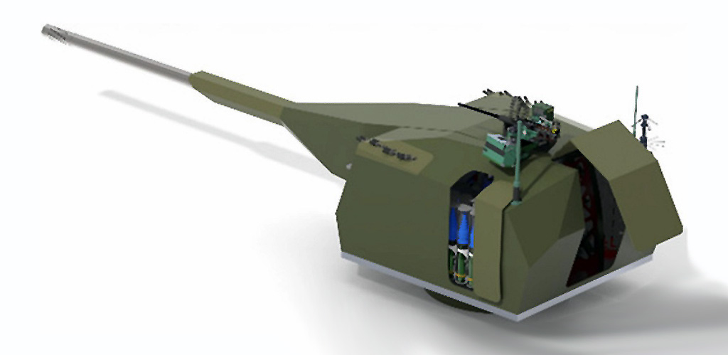 Mass was an issue, and according to information provided the new turret in combat order will be under 13 tonnes. This with the full load of 30 ammunition and 180 modular charges, which allow to fire all rounds in zone 6. It is to note that supercharges and other non-standard charges can also be used.