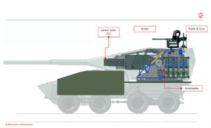 The turret will have a full NVGA (NATO Generic Vehicle Architecture) vetronic architecture and will be fitted with a sensor suite and a C5I (Command, Control, Computers, Communications, Cyber-defence, Intelligence) derived from those already in use in the Italian Army, and its vetronic architecture maintaining high commonality with that of the A2CS (Army Armoured Combat System) currently in development. The RH1-155/52 HITFIRE can be integrated with the JDIFSS (Joint Digital Indirect Fire Support System).