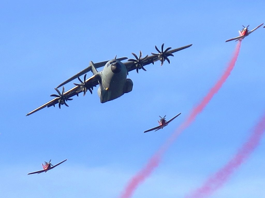 Following the end of the Prime Minister speech several fighters make an impressive attack demonstration, followed by the support of attack helicopters and by the A400M which closed the opening ceremony demonstration.