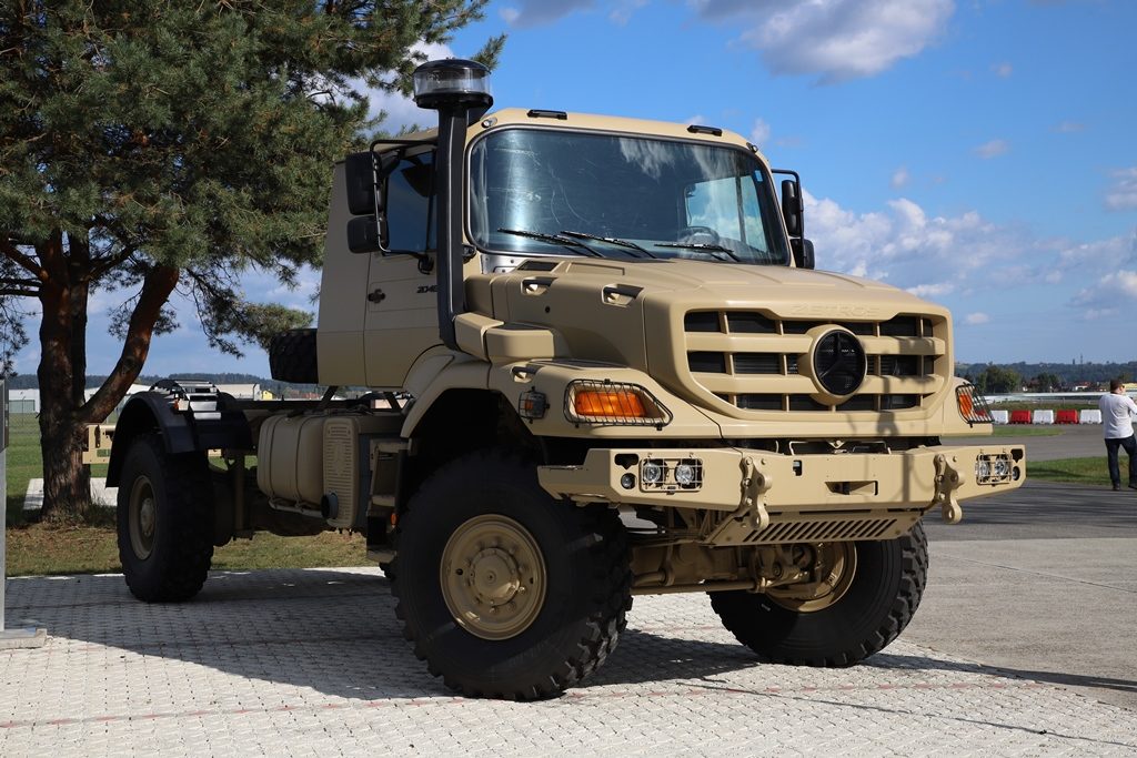 Mercedes-Benz Special Trucks representatives explained the decision to maintain a bonneted trucks line as this has a number of advantages compared to the cab over engine design; first of all it allows reducing height by 0.6-0.7 meters. The fact that the seat is over 1 meter behind the front axle makes the ride smoother, which allows maintaining a higher speed when travelling cross-country. Finally the access to the engine is much easier, and as the cabin does not have to be tilted forward there are no problems should remotely controlled weapon stations and antennas be installed over the cabin roof.
