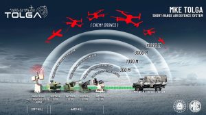 Developed for the protection of land forces, critical facilities, mobile convoys, bases/compounds, and naval platforms, the MKE TOLGA system achieved 100% success by neutralizing hostile drones attacking under eight different scenarios during the test.