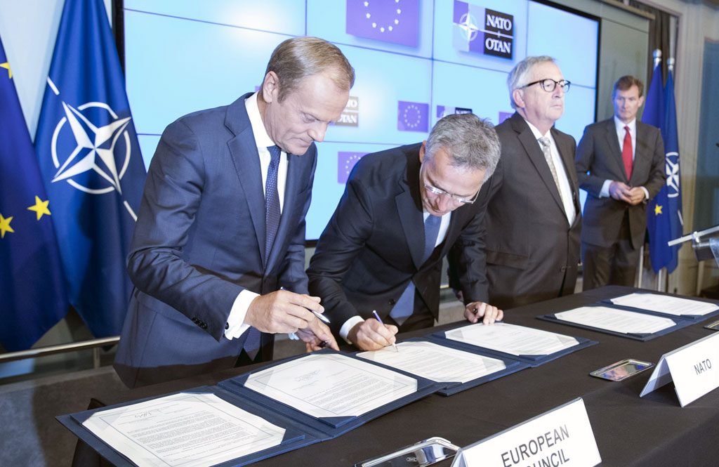 NATO Secretary General Jens Stoltenberg, European Council President Donald Tusk and European Commission President Jean-Claude Juncker met in Brussels on 10 July 2018 to sign a new Joint Declaration on cooperation between NATO and the European Union. “Facing a complex and uncertain security environment, we must work together to keep our nations and citizens safe. And that is exactly what we are doing,” said Mr. Stoltenberg.
