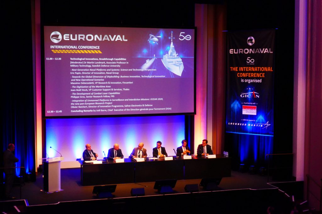 Bringing together high-level speakers from industry, ministries, navies and think tank, to address current and prospective important topics of naval defence, the international conference preceding the Euronaval exhibition opening and organized by GICAN in association with the Foundation for Strategic Research (FRS), has been focusing in particular on the maritime ambitions of Great-Power, technological innovations, breakthrough capabilities and the digitization of the maritime domain. In addition to national development, the latter is also seen the Old Continent developments with the European Union focusing on maritime security and defence themes, as well as join procurement programs and potentially industrial alliance on the horizon.