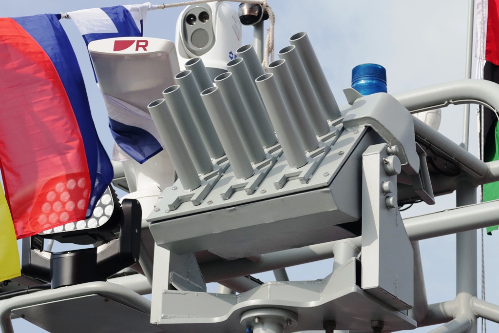 “This ship is designed to carry Navy Special Forces detachments,” the ship’s Captain, a young UAE Navy Lieutenant told EDR On-Line. “We can carry 16 SF operators plus one dune buggy,” he added. The 16 troops are hosted in the centre of the boat, with five suspension seats by Shoxs attached to each side of the wall, while six more seats look to the front, three each side of the central aisle.