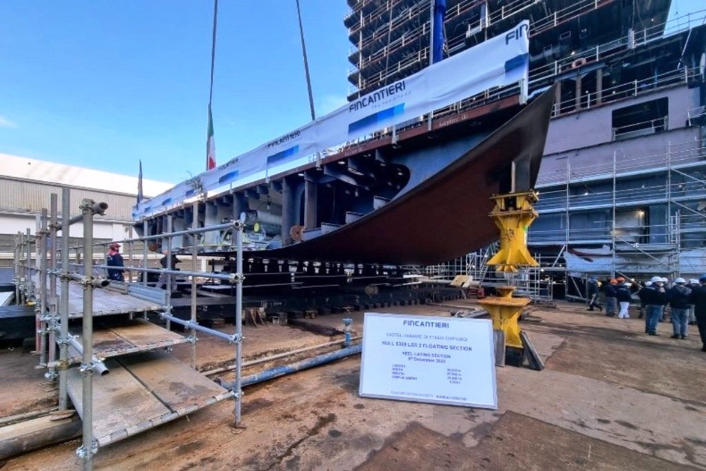 8 December 2022 – The LSS Programme achieved an important milestone with the keel laying ceremony of the bow section of the 2nd Logistic Support Ship (LSS) for France, ordered by Chantiers de l’Atlantique to Fincantieri under the LSS programme.