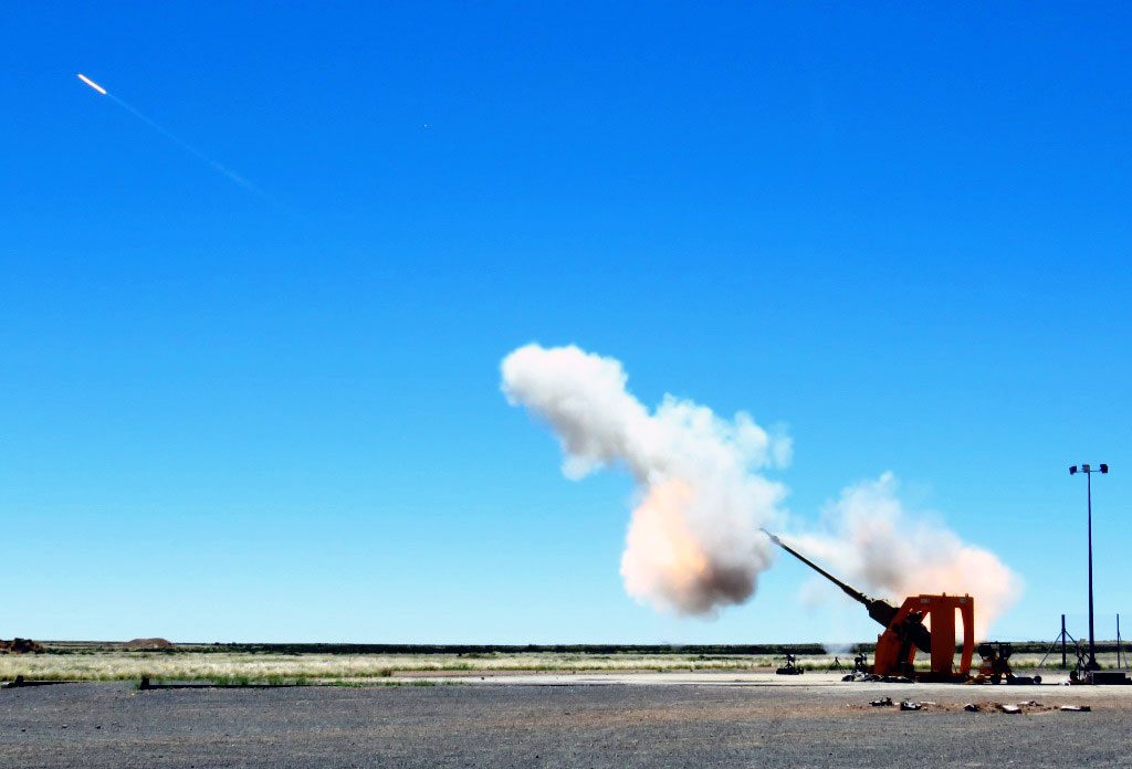 27 November 2019 – At a test fire event on 6 November at the Alkantpan Test Range in South Africa, Rheinmetall demonstrated its extensive expertise in the world of indirect fire. In the presence of international partners and customers, the Düsseldorf, Germany-based defence contractor proved how new technologies can be used to boost the performance of systems that are already in extensive use around the world – those which meet the NATO standards set out in the Joint Ballistics Memorandum of Understanding (JBMoU) as well as non-JBMoU systems. During the event, three new maximum effective range records were set using various guns. A G6 howitzer with a 52-calibre gun achieved the longest range ever attained with a conventional 155mm artillery round: 76 kilometres, while the 52-calibre gun of PzH2000 self-propelled howitzer lobbed a shell 67 kilometres. Finally, a field howitzer with a 39-calibre gun attained a range of 54 kilometres.