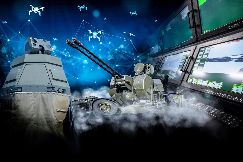 Cannon-based air defence solutions from the “Skynex” family of products are especially appropriate for short-range operations, where guided missiles cannot be used effectively. The Skynex system encompasses airspace surveillance, a weapon engagement centre, and effectors. Featuring a rate of fire of 1,000 rounds per minute and a maximum effective range of up to 4,000 metres, Oerlikon rapid-fire automatic cannon serve as the effectors.