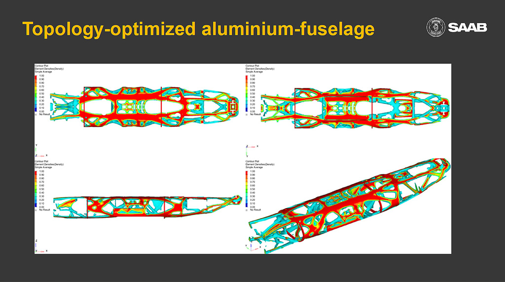 Adopting the new design methodology Saab engineers defined where they want to have keep-out zones, where they need to install equipment in the fuselage structure, and then let the algorithms work, defining where the structure is required to be and optimizing it for performance and mass. The result is quite different compared to conventionally produced fuselages. “Something that struck me when working with these types of topology optimization algorithms is that nature is pretty clever. It was a surprise that these shapes look this organic and this sort of skeleton-like. On the other hand, I think nature is very good at optimization and creating only the structure required per kilogram of mass that needs to solve the task at hand. And I think this is what we’re seeing here as well,” the Head of The Rainforest added. And nature evolution has to do with the California-based company name. “Our name was derived from the concept of Darwin’s divergent evolutionary biology,” Cooper Keller explained, underlining that instead of millions of years of predatory evolution, here it is minutes of supercomputing and AI iterative evolution.
