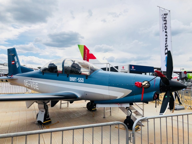 The Diamond Aircraft Group was attending Farnborough for the first time since its was acquired by China’s Wanfeng Aviation at the beginning of the year and just two months after its maiden flight, Diamond Aircraft’s new variant of its Diamond Aircraft Reconnaissance Trainer (DART) series tandem-seat turboprop aerobatic trainer, the DART-550 made its public debut at the air show.