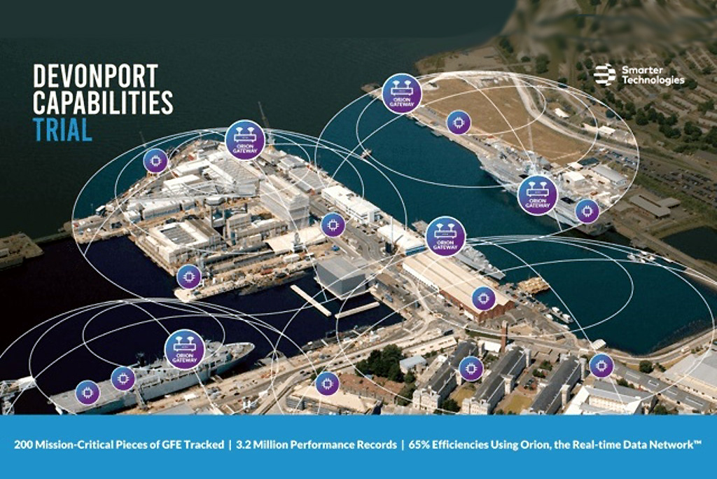 8 February 2023 – Smarter Technologies, the leading British provider of Internet-of-Things (IoT) solutions, has successfully completed a capability trial at His Majesty’s Naval Base (HMNB) Devonport on behalf of the UK MoD. They used their proprietary Orion IoT Data Network to track mission-critical Government Furnished Equipment (GFE) improving effective asset management, mission assurance and operational efficiency.