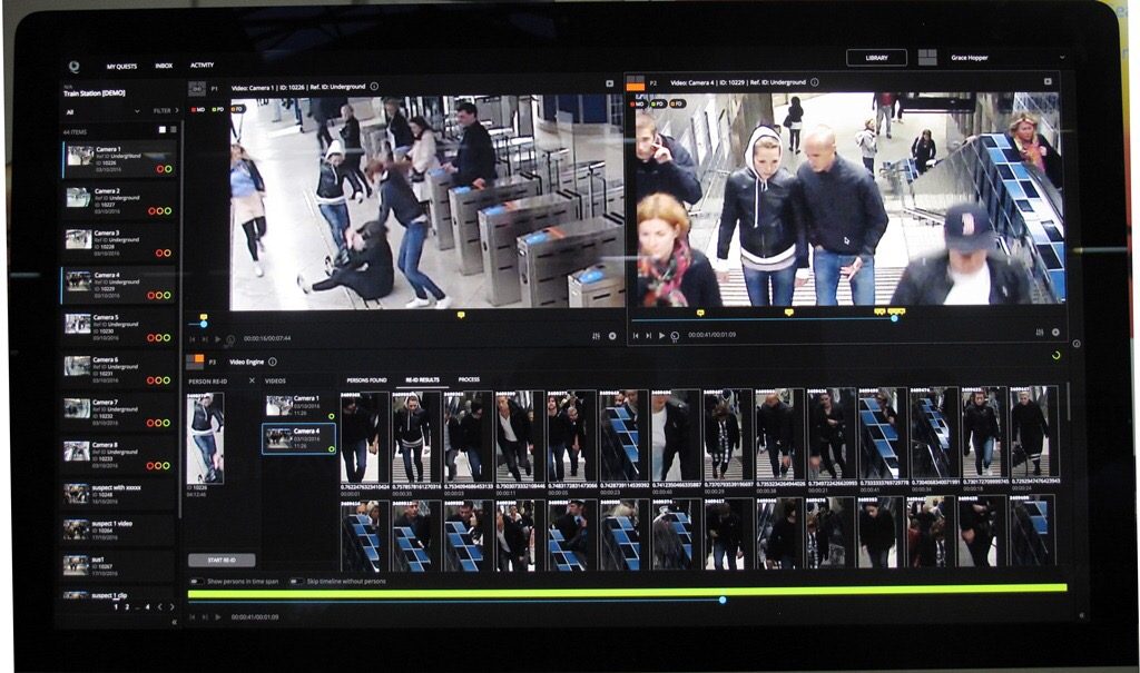 Another module allows Person Detection, the officer being provided with a wall of images representing the people that appear in the video; a Face Detection & Attribute Search allows to further refine the search, i.e. exploiting information provided by witness. Once one person has become that of interest, the SeeQuestor system allows Video Search, extracting from all the materiel available for the case the images of the suspect. This allows to follow the tracks of the person, i.e. reverting to the Dynamic Map, numerous editing tools being available such as image improvement routines, timeline markers, etc.