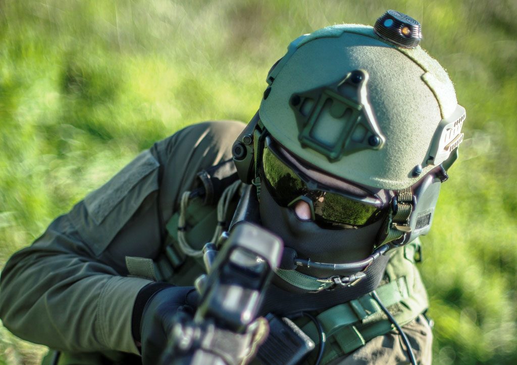 The system is made of a control box, weighing 255 grams without batteries, and a beacon, located over the helmet, which weighs only 70 grams. The latter emits a signal in the upper hemispheric space on the 3 – 12 µm, most efficiently in the 3-5 µm band, allowing mid-IR and long-IR thermal imagers to pick-up the signal at distance. According to the company an uncooled thermal imager operating in the 8-12 µm band can pick up the signal at 250 meters using the narrow field of view. The distance increases dramatically when shifting to cooled sensors operating in the 3 – 5 µm band, a camera with InSb detector and 250 mm lens picking up the soldier equipped with the MS OMR II c at 3 km distance, airborne systems further increasing it up to 15 km; in fact a recent experiment has shown that this range can even be much greater, the system having been identified from an altitude of 18 km by a Rafael pod.