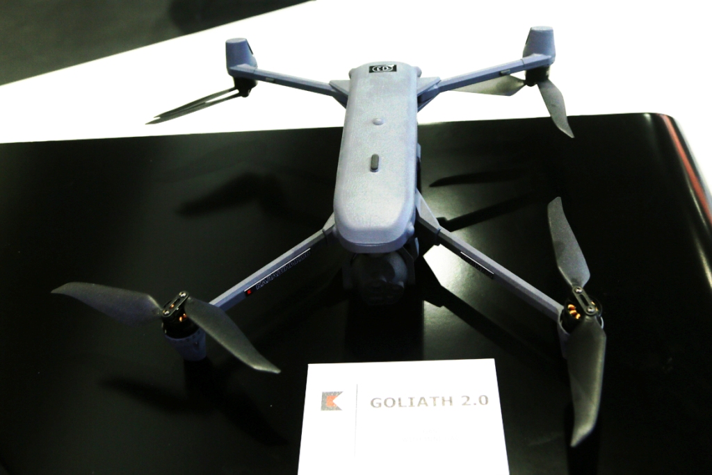 The Goliath 2.0 mini-UAV’s optical-electronic reconnaissance module features a high-resolution three-axis stabilized daytime camera with a telephoto and wide-angle lens, 30x zoom, a thermal imaging camera with high sensitivity, all fitted into a gyrostabilized gimbal. The thermal imaging camera has a 640 x 480 pixels resolution and is fitted with a 4x digital zoom. The drone is equipped with obstacle avoidance and threat warning systems to avoid other UAVs. The maximum takeoff mass is 1,500 grams, the maximum flight time is up to 40 minutes, the maximum range is 10 km, and the maximum flight altitude is up to 500 metres.